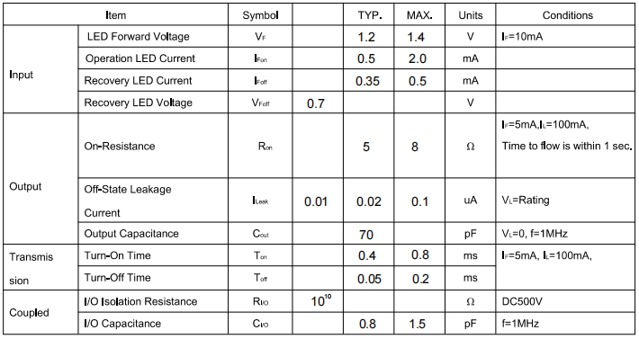 Please obey the following conditions to ensure proper device operation and resetting. Input LED current (Recommended value): IF ≥5mA and ≤30mA